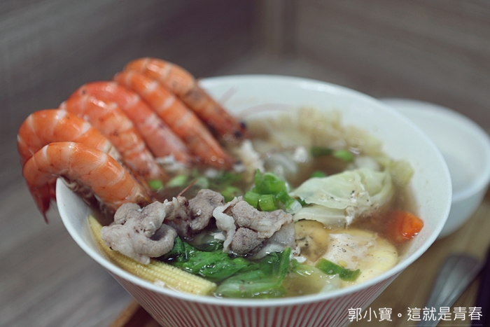 | 蝦子是白蝦,但是都是有挑選過的大白蝦,尺寸都滿大的,一次給了滿滿的六隻,白蝦吃起來非常好吃,重點是白蝦也非常新鮮,如果不是現撈不然就是有急速冷凍,不然很難可以有這樣彈牙的口感。 |