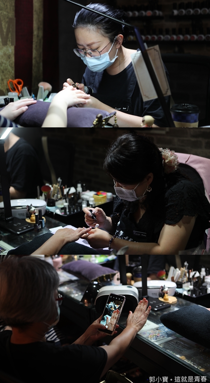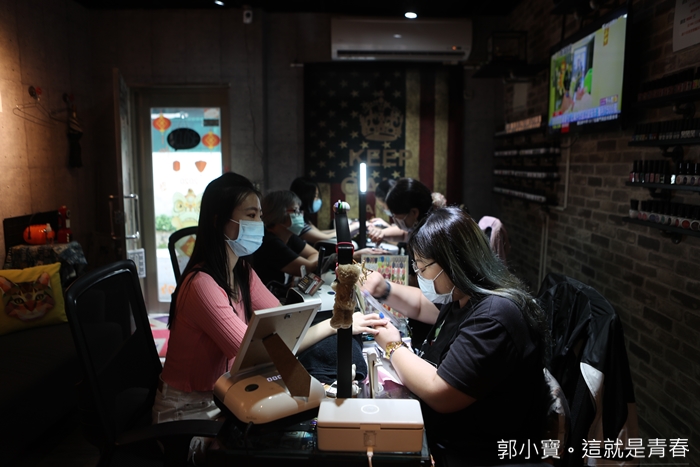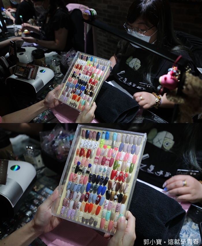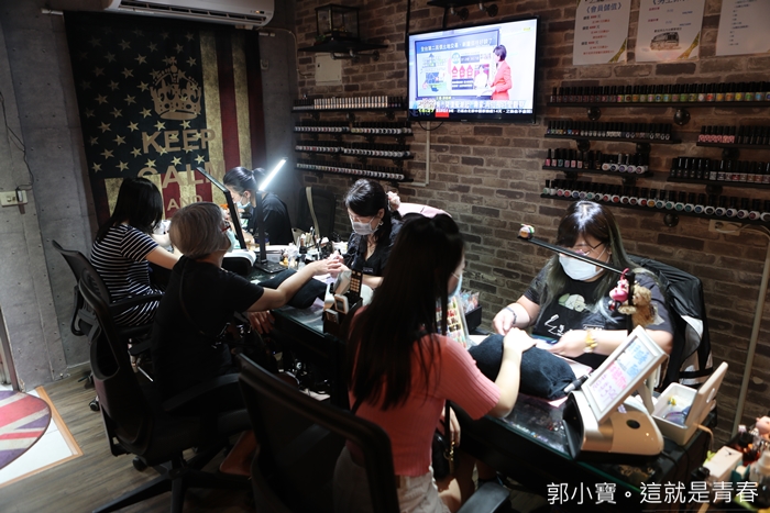 當天我們預約的美甲師是店長寶妹,它們工作室目前有三位美甲師,每個人的強項都不一樣,寶妹最強的是彩繪的部分,彩繪的功力很深,就像刺青要刺的好,師傅的圖才是最重要的基本功,如果有疑問的部分可以先請寶妹構圖。