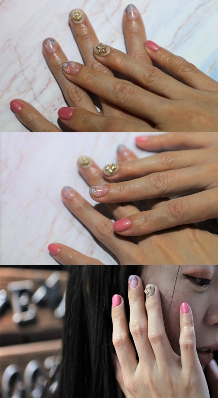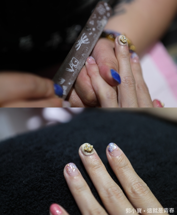 太妃對於這次愛手愛腳 Love Nail 幫她處理的指甲真的很滿意,她跟店長寶妹說想要低調卻又活潑年輕帶點粉嫩的春天氣息,不要有太多誇張的鑽飾加上有點繽紛感,如果我是美甲師的話我就會想要打她了,因為這幾個很多元素都是衝突的,但是寶妹卻可以做出她滿意的美甲XD,從寶妹做的保養步驟到畫圖技術真的看的出專業程度。