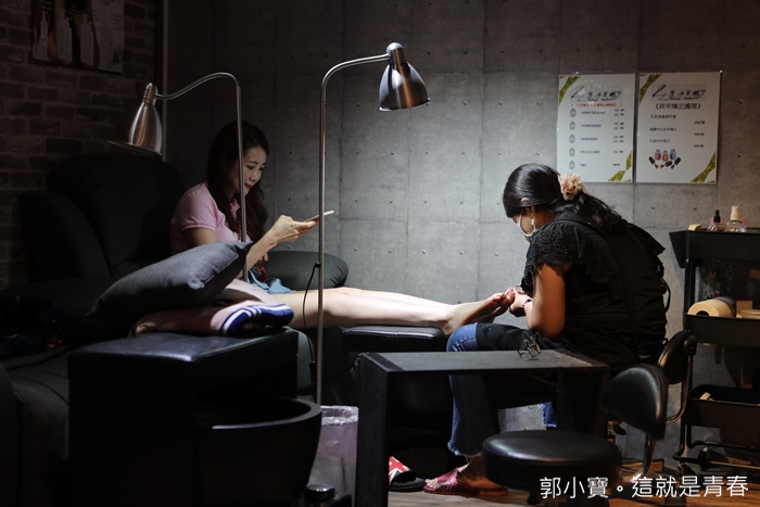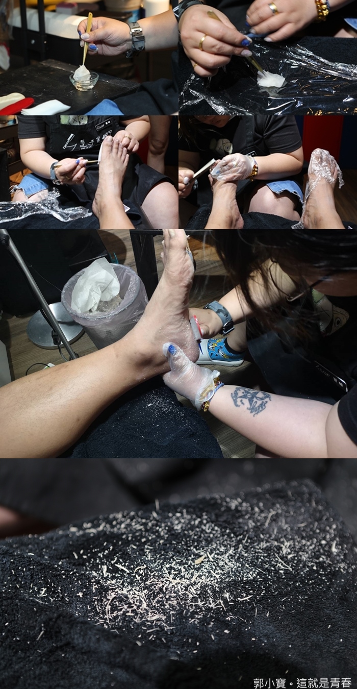 最後在大家的鼓舞下,我獻上了我將近40年的老腳皮,厚厚的一層腳皮,老實說當我說我要做的時候,三位美甲老師的眉頭深鎖,可能有稍微瞄到我的陳年老腳皮吧XDD