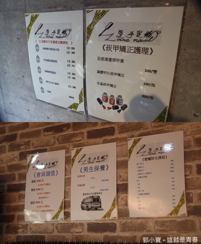 愛手愛腳 Love Nail 的價格滿透明的,任何保養跟美甲的價目表都完整揭露,讓我好奇的是他們也有男生的保養,而且店內男生的客人也不在少數。