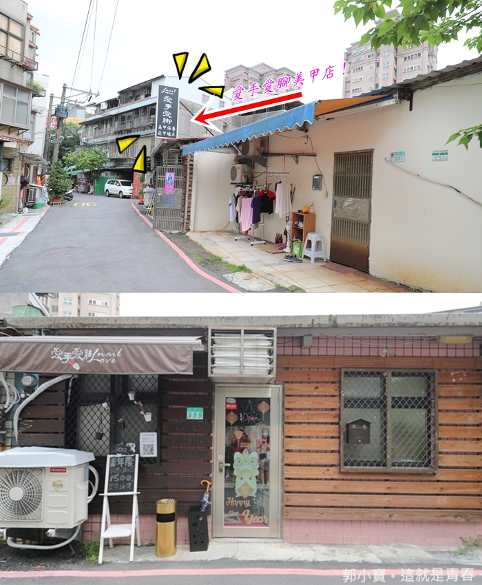 進入小巷子後就可以看到愛手愛腳 Love Nail 了,要不是有很穩定的老客戶,很少會開在這麼不顯眼的地方,其實也是因為預約好久加上那麼隱密還有主動帶老婆來要給她一個驚喜,所以我就用相機記錄了這一切的初體驗。