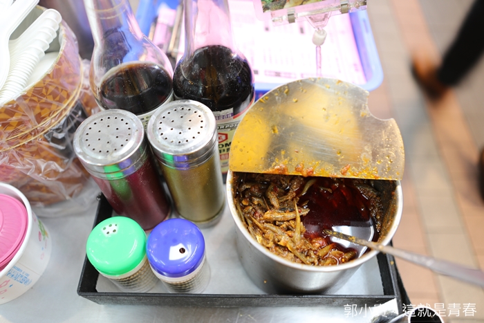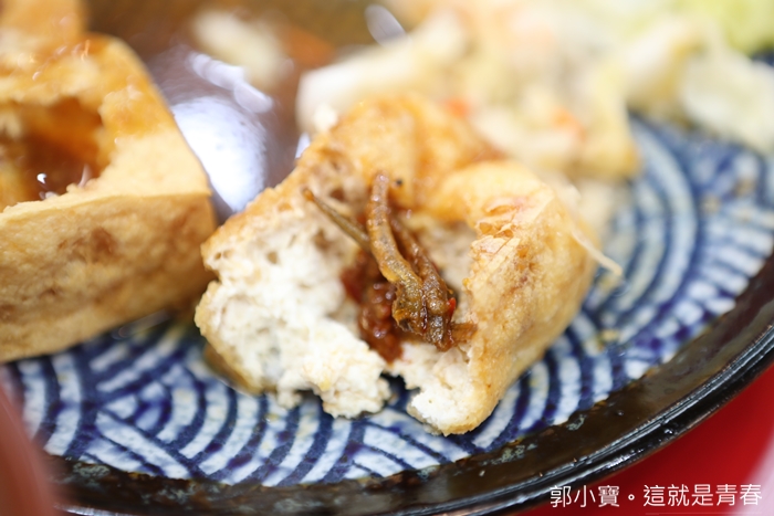 | 咬下一口後再放些辣椒小魚乾我覺得更好吃,主要因為臭豆腐的裡面真的沒有什麼味道,太白了XDDD |