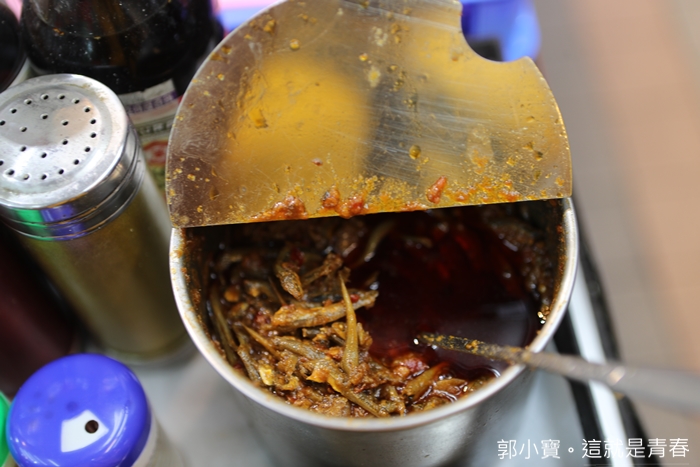 | 招牌的辣椒小魚乾,小魚乾都超大隻非常霸氣,但是這辣椒小魚乾止渴以內用不能外帶。 |