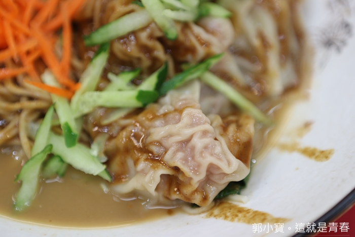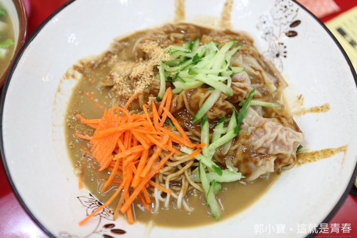 | 全部裡面最滿意的就是這一碗麻醬麵了,看起來真的很像涼麵,小黃瓜絲加上胡蘿蔔絲,一整個就是熱的涼麵,不過拌開後入口一整個非常滿意,麻醬的滋味非常濃郁,而且每一口都濃郁,舒爽的把整碗都嗑光。 |