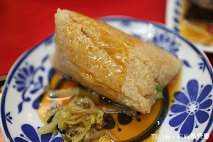 | 他們家的肉粽算是我安慰了一下我這個南部人,是南部粽耶,吃起來軟黏的口感真的是我的回憶,裡面的瘦肉也不錯,不會過老不會卡牙,搭配的是酸菜滿特別的,如果可以撒上花生粉就更棒了XD |