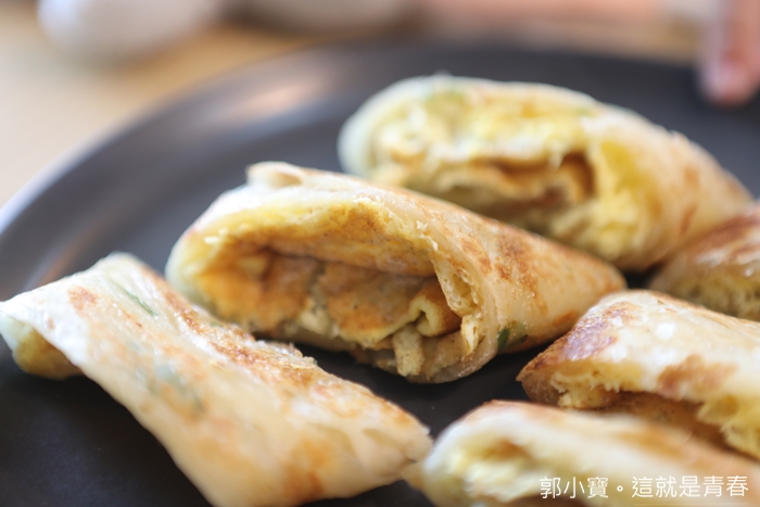 | 臭臉找餐也有提供多樣化口味的蛋餅,但是我滿喜歡裡面比較特別的蔥抓餅蛋,沾點辣椒醬還不錯,口感都是水準之內。 |