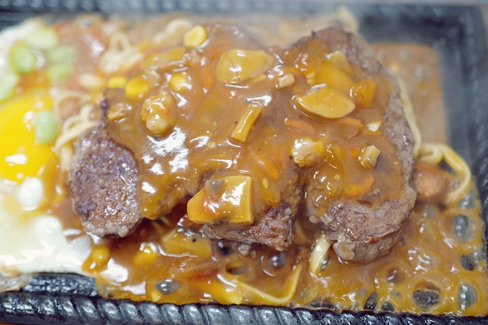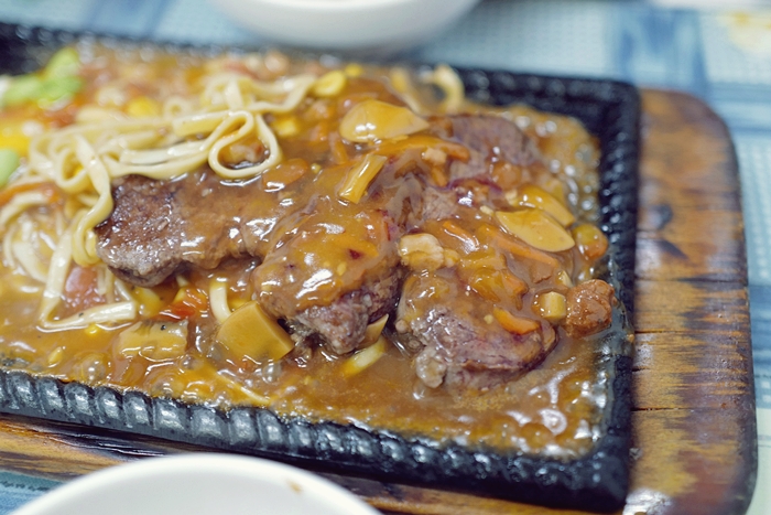 | 很多人推薦上上牛排的原因是因為她的鐵板麵特別好吃,所以食量較大的人可以選擇加麵,也可以選擇雙拼,又或者你點了牛排可以在多加牛肉只需要花費70元。 |