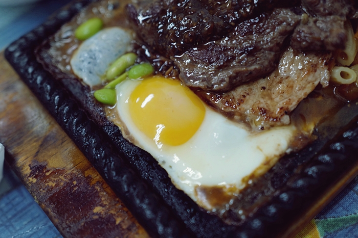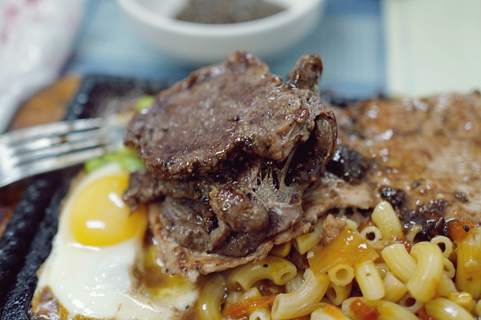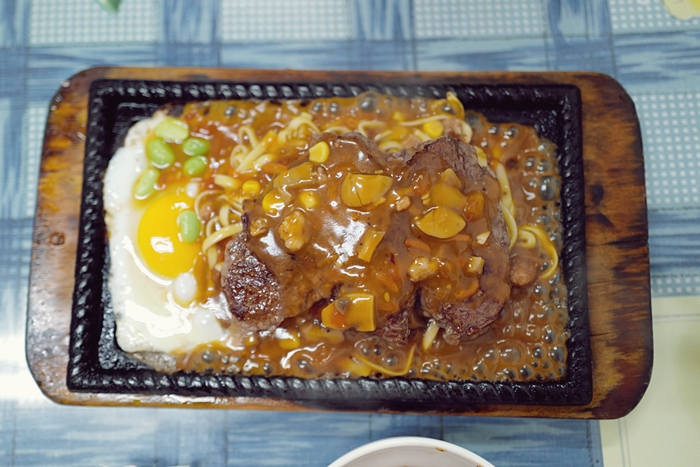 當然平價牛排館就是少不了這鐵板吱吱作響燙熟的荷包蛋。