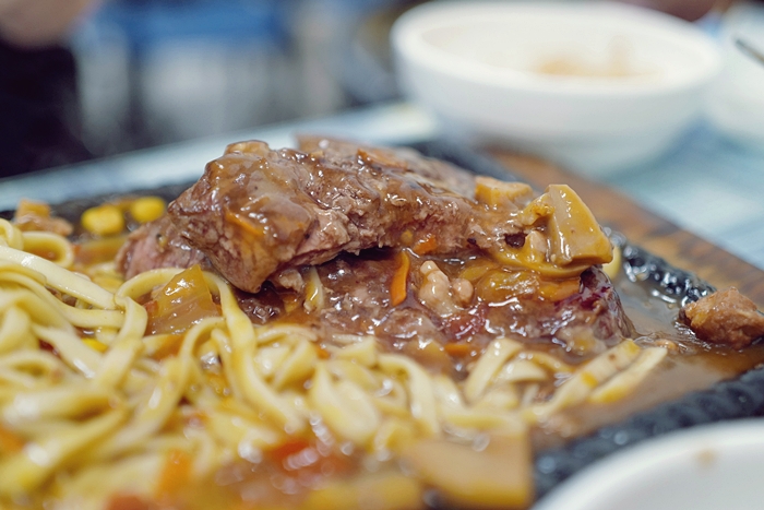 | 讓很多人推薦上上牛排的其中一個原因就是它們家是使用雞蛋麵,也就是一般的家常麵,雖然很多牛排館像是蔡家牛排也是使用家常麵,但是整體來說上上牛排的麵確實比較好吃。 |