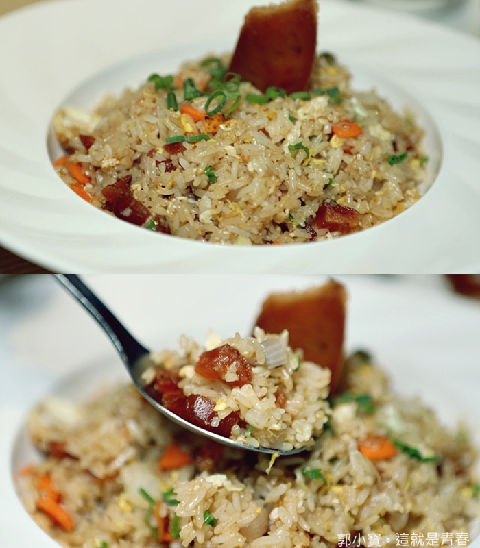 | 鯉魚餐廳最經典的招牌就是他們家的烏魚子炒飯,炒飯炒的功力相當有水準,不會過油也不會過乾,重點是連烏魚子的香氣都有炒出來,米飯入口爽口粒粒分明又帶點水分非常好吃,烏魚子給得相當大氣,正中間插著超厚切的烏魚子霸氣十足,還有大塊切丁的烏魚子也很迷人,每一口都有烏魚子超滿意,烏魚子的油脂也夠多,非常推薦!! |