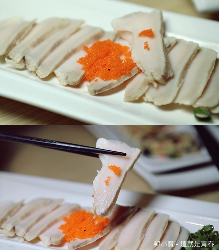 | 其實涼菜的部分也很豐盛,川耳非常彈脆以外,味道也調得很好,仔細觀察都會在有烏魚子的蹤跡,連小菜都會有烏魚子入菜的蹤影真的很特別,油雞也很好吃,烏魚子堅果起士最特別,滋味很特別,絕對可以顛覆你對味蕾的全新體驗。 |