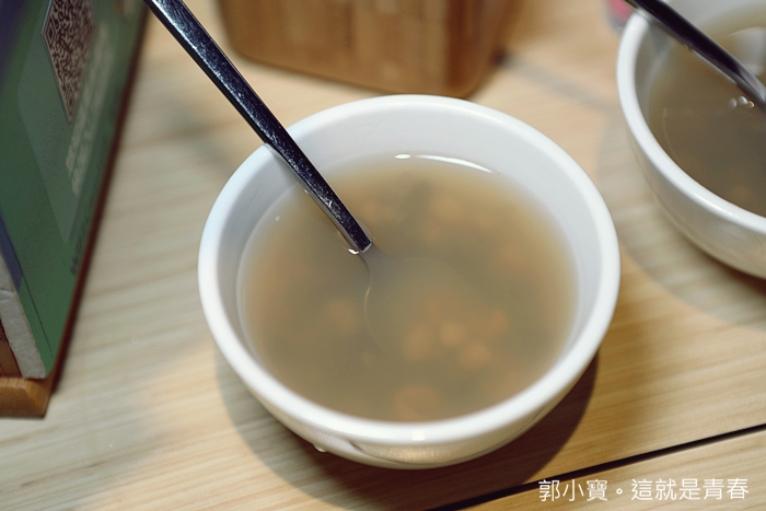 | 沒想到還有飯後甜點,綠豆湯不死甜,這一餐真的爽到我們家太妃跟嬰皇這兩個女生,鹹甜餐點加上綠豆湯都是很對女生的胃口。 |