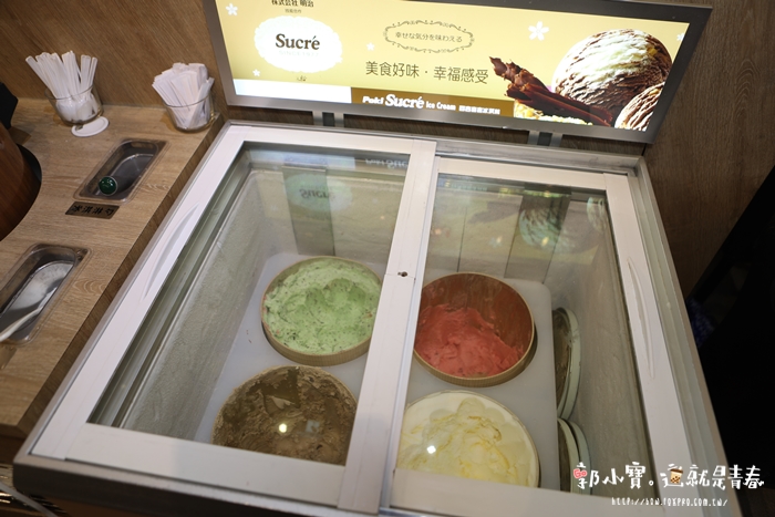 | 冰淇淋則是跟明治技術合作的冰淇淋,總共有四種口味可以選擇。 |