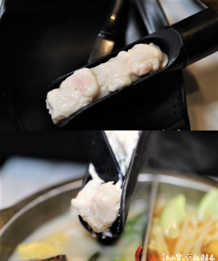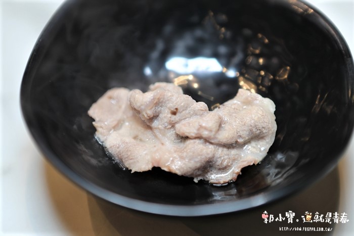 | 梅花豬涮起來入口沒有惱人的豬腥味,帶點彈牙口感真的非常順口,一片接著一片瞬間就被我們嗑完了,他們家的肉品確實都還滿有水準的。 |