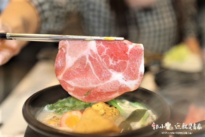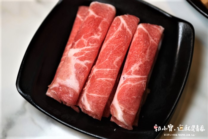 | 因為太妃比較喜歡有油脂的肉品,所以就點了梅花豬肉,可能也是顧慮我喜歡瘦肉的口感,梅花豬的肉質看起來也真的比一般的平價小火鍋好了一點,且還滿大一片的。 |