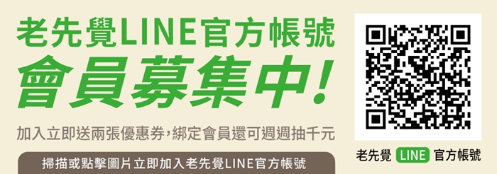 LINE官方帳號好友募集中!點擊上方圖片即可直接加入好友,不僅可以立即免費獲得兩張優惠券,成功綁定會員還能週週抽千元!另外,小寶我還幫大家爭取到福利啦!於對話框輸入「OG11BG」,另外再加碼週週抽老先覺$200元商品兌換券!心動不如手速行動,馬上點擊圖片加入!