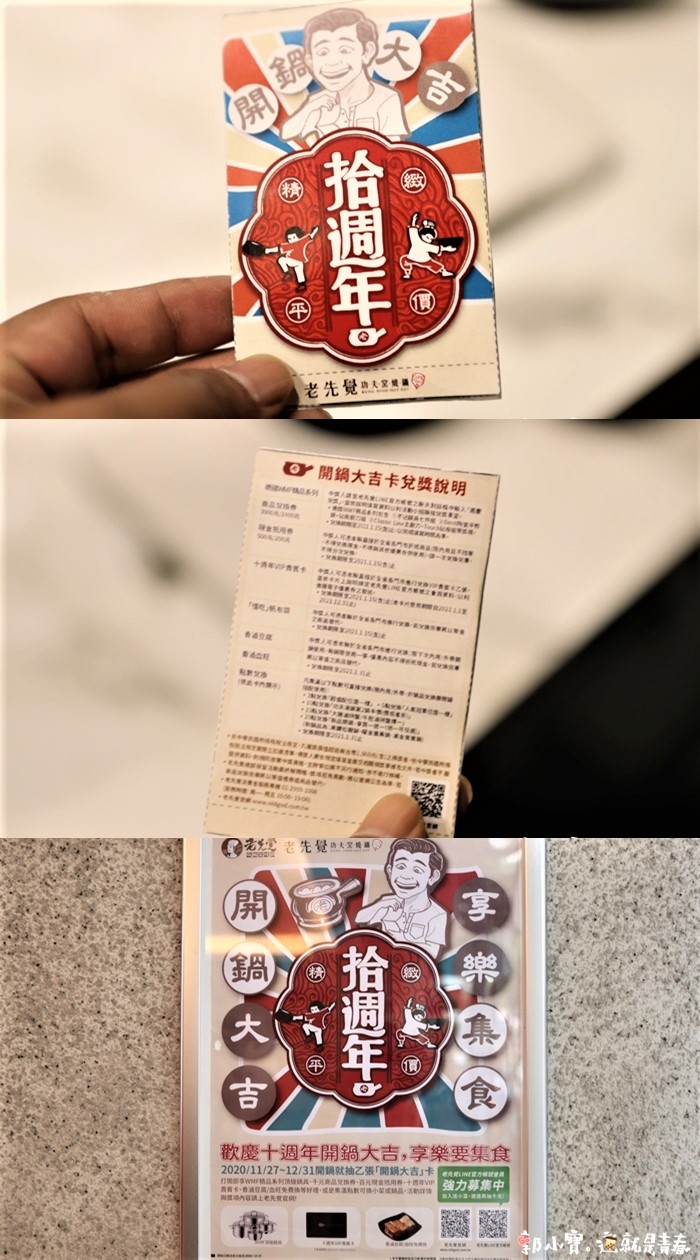 只要在11/27-12/31,來老先覺吃火鍋,開鍋就可以得到乙張「開鍋大吉」卡 ,開2鍋得2張,以此類推,打開開鍋卡裡面就藏有超多獎品,張張有獎超有趣的!!