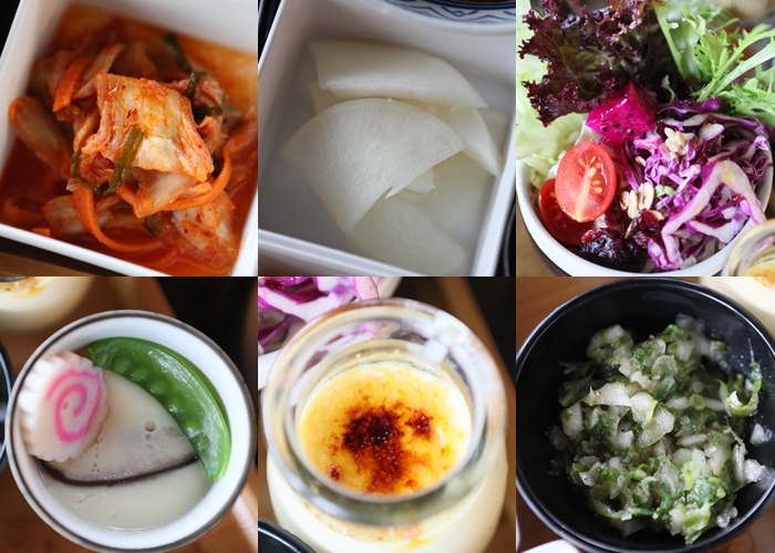| 每一分燒肉定食套餐都會有小菜跟生菜、還有甜點跟茶碗蒸,品項非常豐富,醃製物都很好吃,泡菜滿有水準的,加上蔥鹽搭配牛肉也很夠味,還有飯後甜點真的很中螞蟻人的心。 |