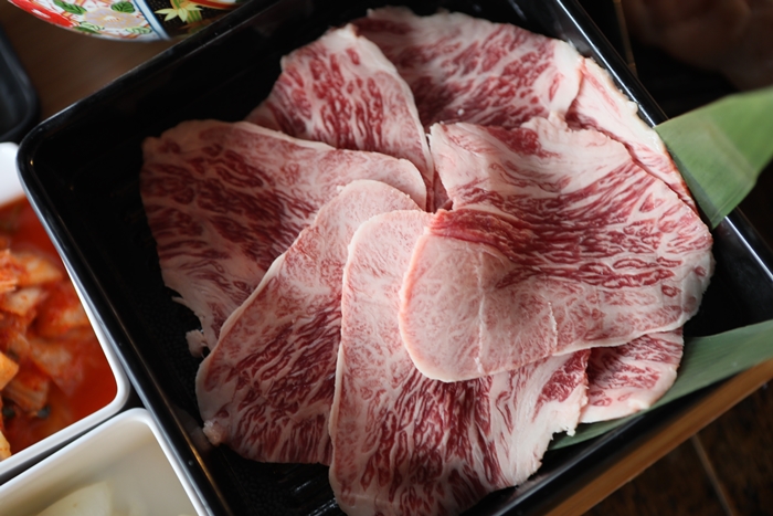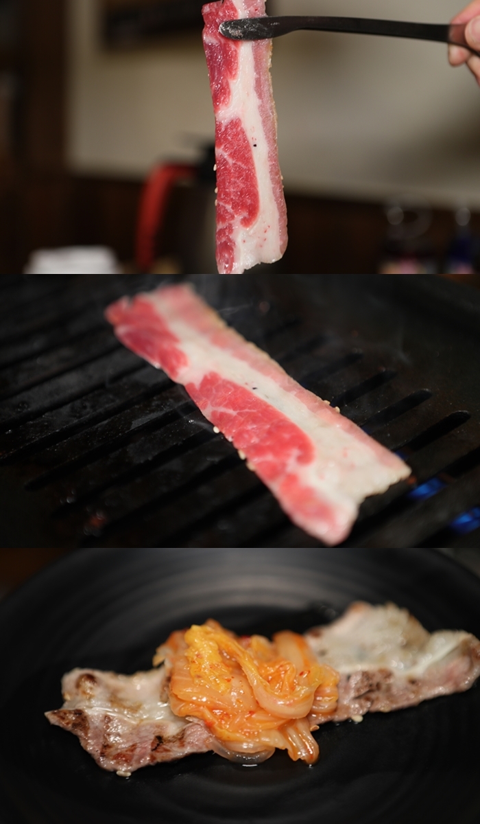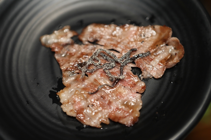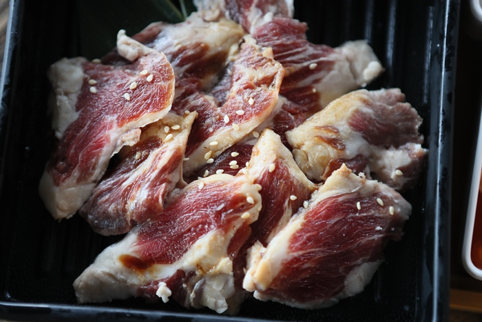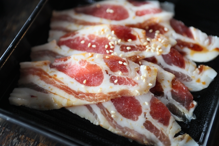 | 她們家的牛五花真的還滿漂亮的,用的品質算是很不錯,且切的也算厚,油脂分布跟肥瘦比例的也很均勻,烤到半熟的就可以起鍋,入口真的超軟嫩又有豐沛的油脂,單吃就很好吃,重點夾著泡菜更是別有一番滋味,滿足喜歡多種變化口味的消費者。 |