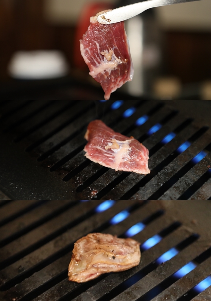 | 對我來個人來說,我吃燒肉一定要有橫膈膜,這一個部憤世我超愛的,橫膈膜在牛肉裡面的定義算是牛肉也算是牛內臟,因為他就包裹著內臟外層,吃起來的口感有售肉的口感但依然有肥肉的油脂。 |