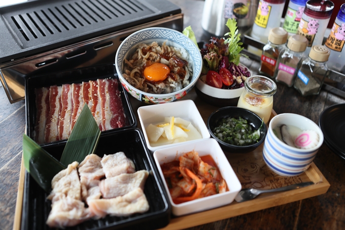 豚兵衛個人燒肉定食每份套餐都有兩款肉品,加上還有其他小菜跟附餐,這樣的價位真的很划算。 |