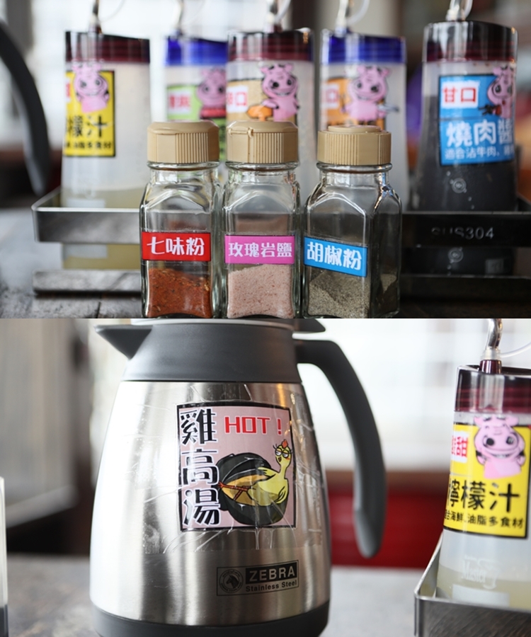 | 上桌的時候都會有先上一壺雞高湯,還有超多調味料的,這調味料的選擇可以跟日本比了,重點是像太妃就超愛超多調味料,每一口都有不一樣的滋味。 |
