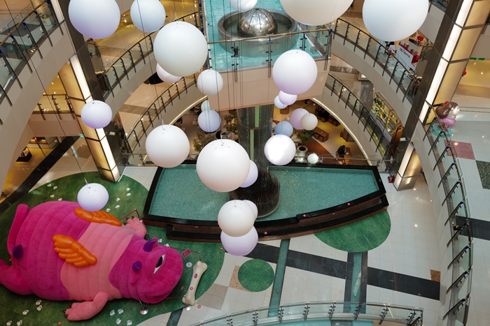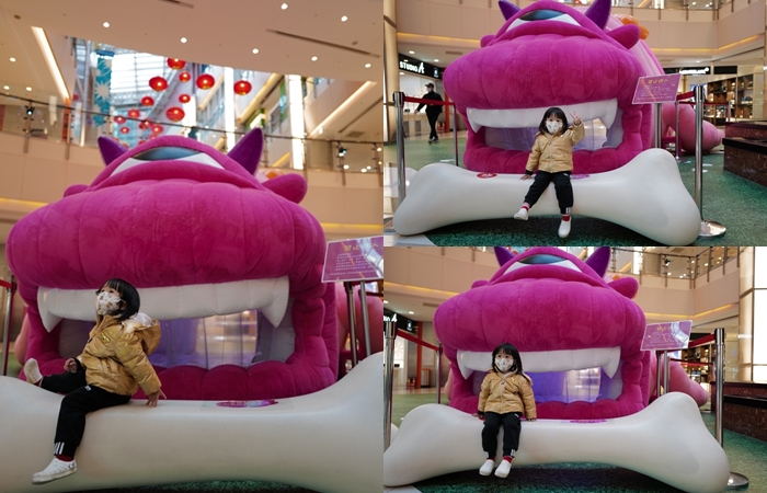 原本在民間故事裡除夕夜擾民的年獸,在大江購物中心化身成為桃紅繽紛亮眼、愛美食的吃貨年獸:統稱年獸為"吃貨年獸",慵懶地趴在印有各式餐點料理,讓人聯想到「放假耍廢」的放鬆心情,可愛外型加上呆萌的表情,此外全館各處也掛上應景且喜氣洋洋的燈籠及充滿童趣的燈球,吸引不少大小朋友駐足拍照。 |
