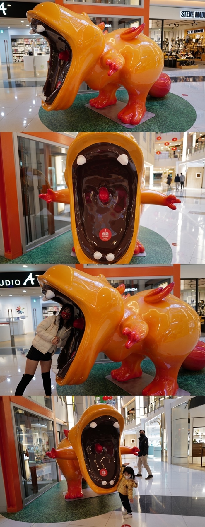 大江購物中心2021年的新春裝置藝術特別邀請曾療癒全球藝術作品「黃色小鴨」的台灣專業製作團隊-大氣層有限公司,聯手打造一座大型充氣膜偶「吃貨年獸」。