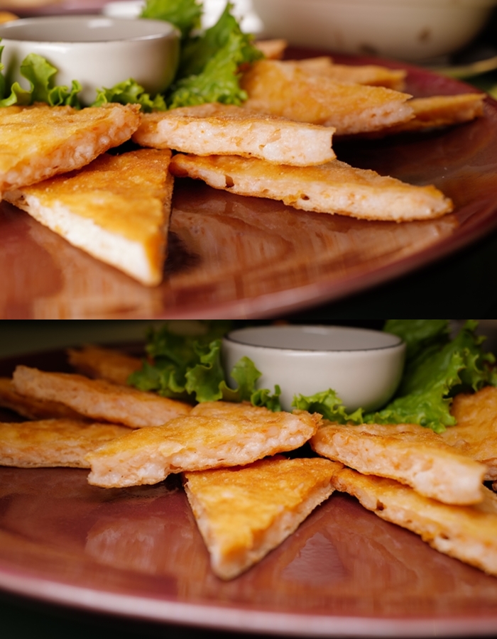 | 可以在過年的時候還吃到這超厚的月亮蝦餅真的太過癮了,瓦城的月亮蝦餅是很多人最推薦的美食,當然也不能不放進年菜的菜單裡面,外層酥脆加上超厚的蝦漿每一口都是大滿足。 |