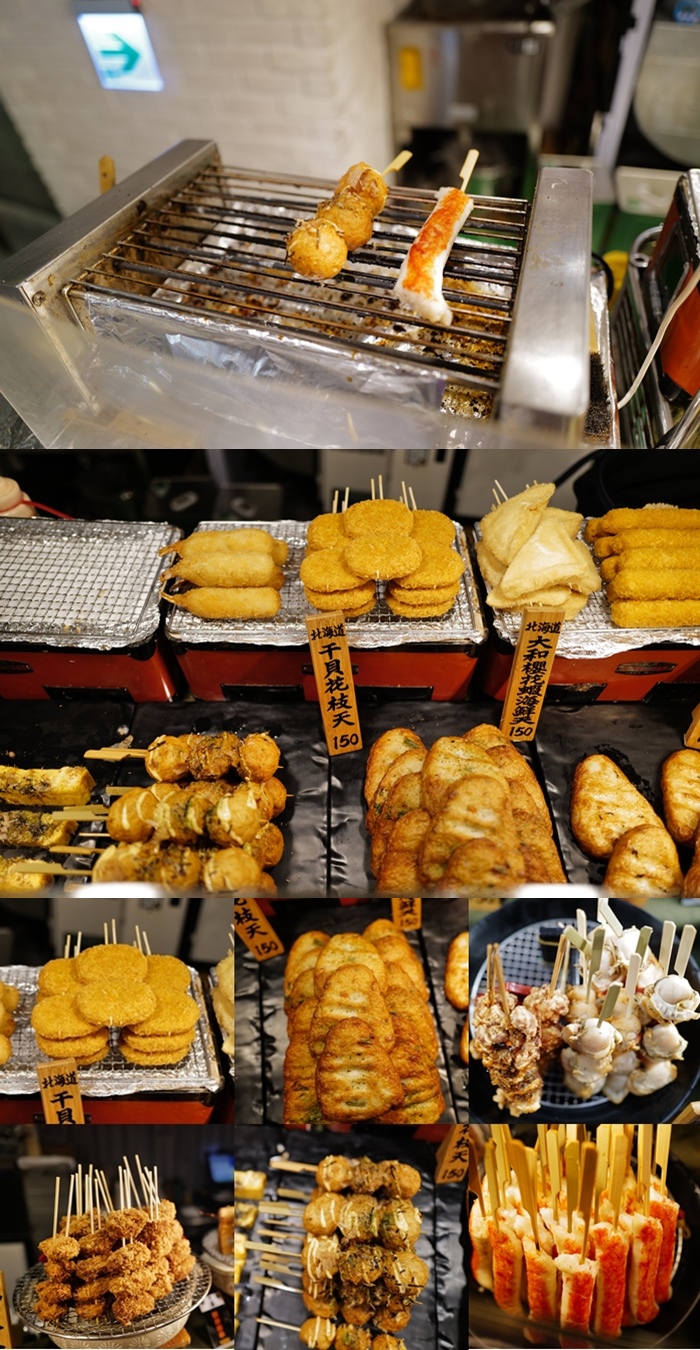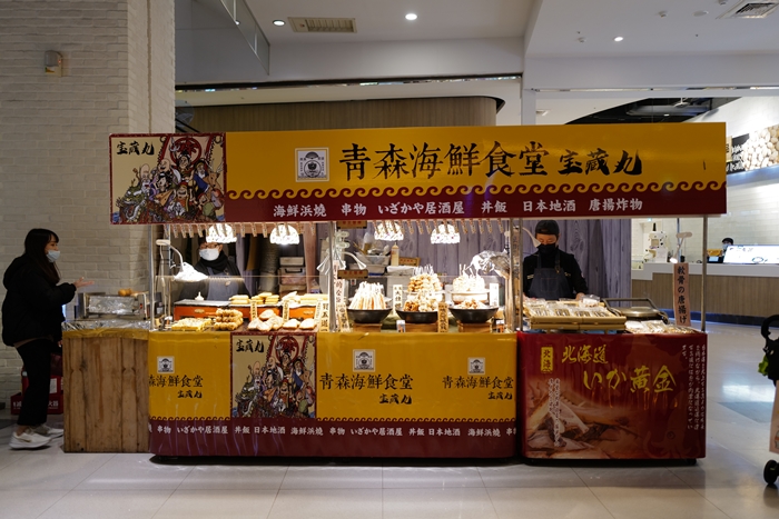 | 這一次大江購物中心把整個青森海鮮食堂都搬來了,超有日本風情的海鮮食堂檯面上滿滿的各式各樣海鮮串烤都讓人口水流個不停,除了有海鮮串烤以外還有許多海鮮炸物,非常受歡迎的一攤,這一攤真的很推薦!! |