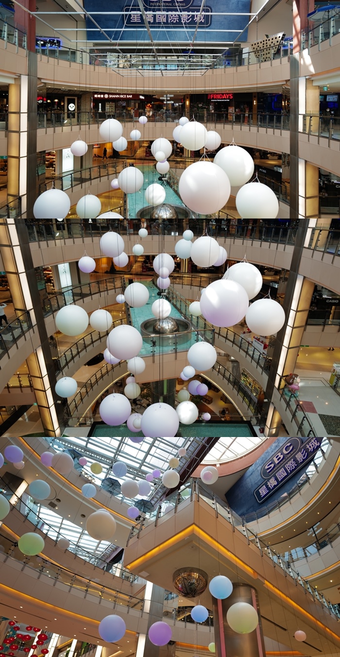 | 最美的主視覺廣場空間吊起來七彩的球體好夢幻,搭配灑落的陽光或是夜晚的燈光完全都是不一樣的兩種氛圍,每個角度看都有不一樣的驚喜。 |
