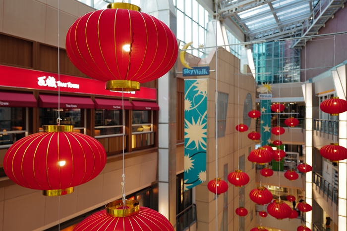 | 當然過年不可以少的年味大江也都有安排,在兩側的廊道高空掛的是超有年味紅燈籠,布置的非常用心,根本就是年貨大街的概念,讓妳從過年前到元宵節都有滿滿的過年氣氛。 |