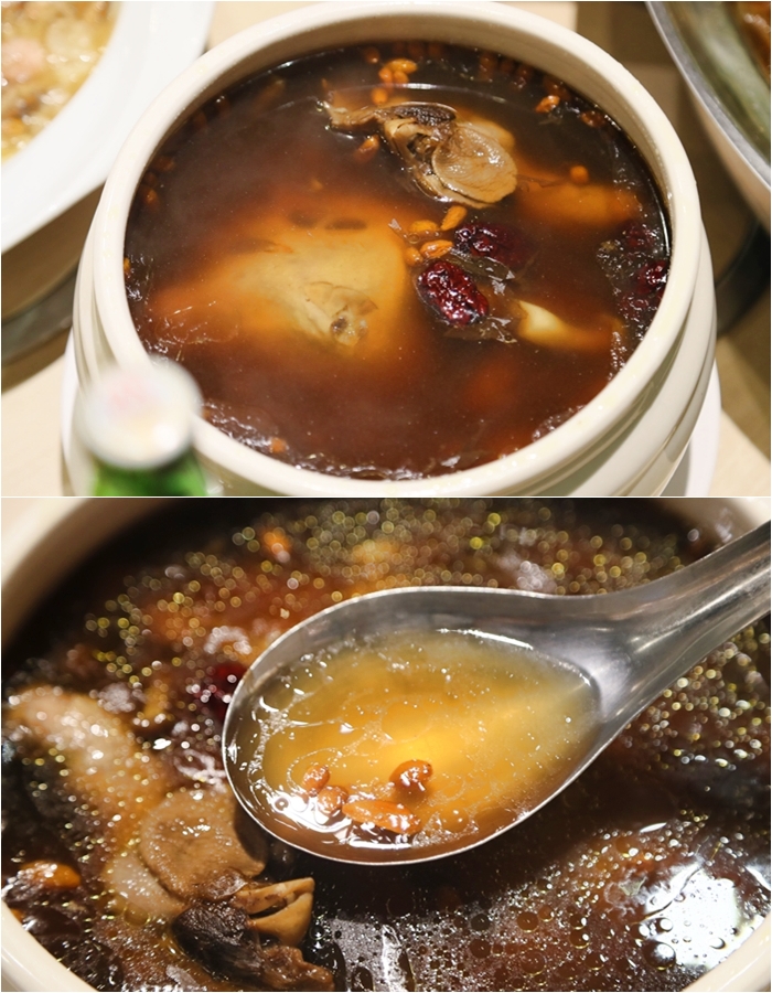 | 黑蒜菌菇雞也很推,有別於一般的雞湯,阿吉師熬煮的黑蒜菌菇真的沒話說,黑蒜的味道非常討喜,加上菌菇的鮮味提升層次,一口喝下鮮美滋味豐富,雞肉也燉煮的軟嫩入味,一點都不會乾柴,真的很推! |
