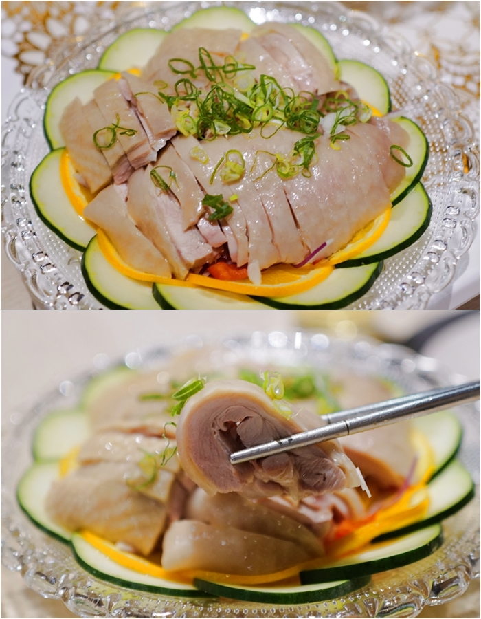 油雞看起來真的水嫩嫩的,尤其雞皮的部分真的像水晶一樣透亮,一口咬下冰涼有肉汁,口感也很好,雞腿肉非常嫩,一口接著一口廷不下來。 |