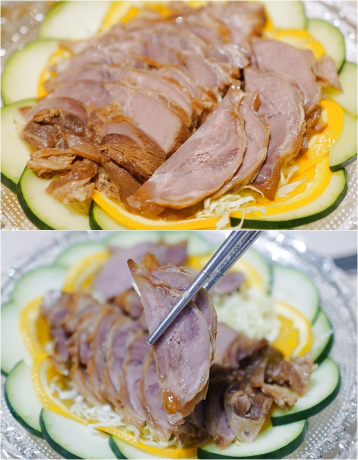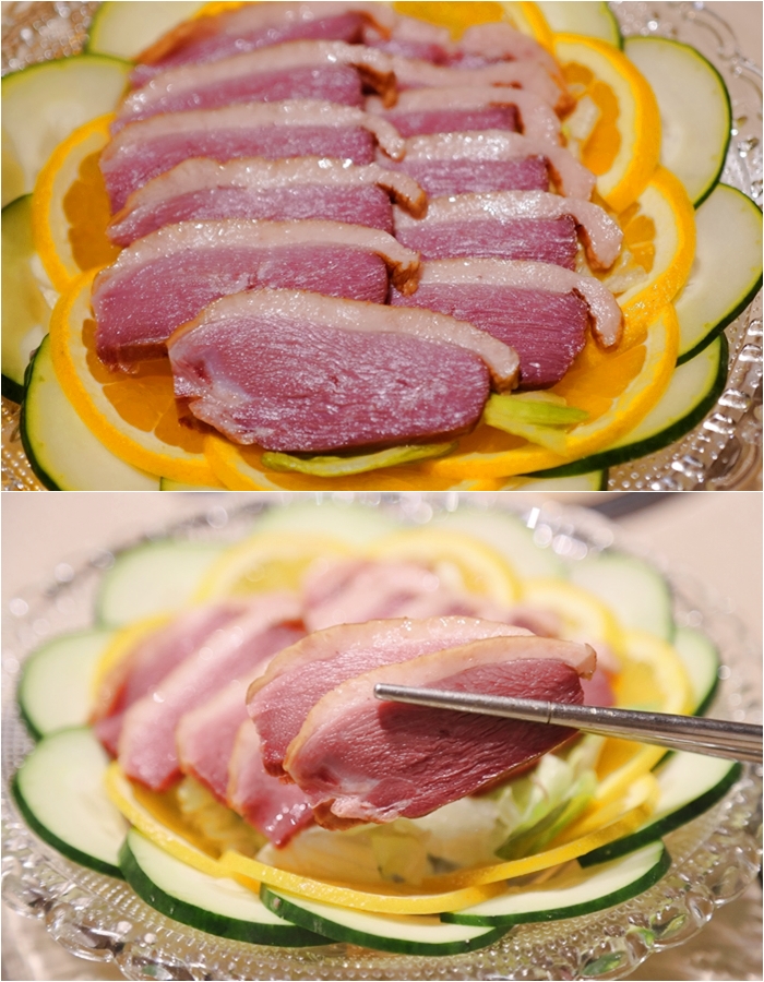 煙燻鴨肉汁豐沛,淡淡的煙燻味絲毫不會搶走櫻桃鴨肉的風味,非常美味。 |