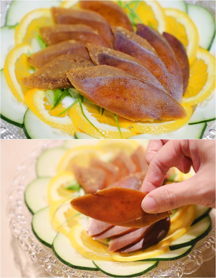 當然少不了烏魚子,阿吉師特別挑選過的烏魚子油脂豐富。 |