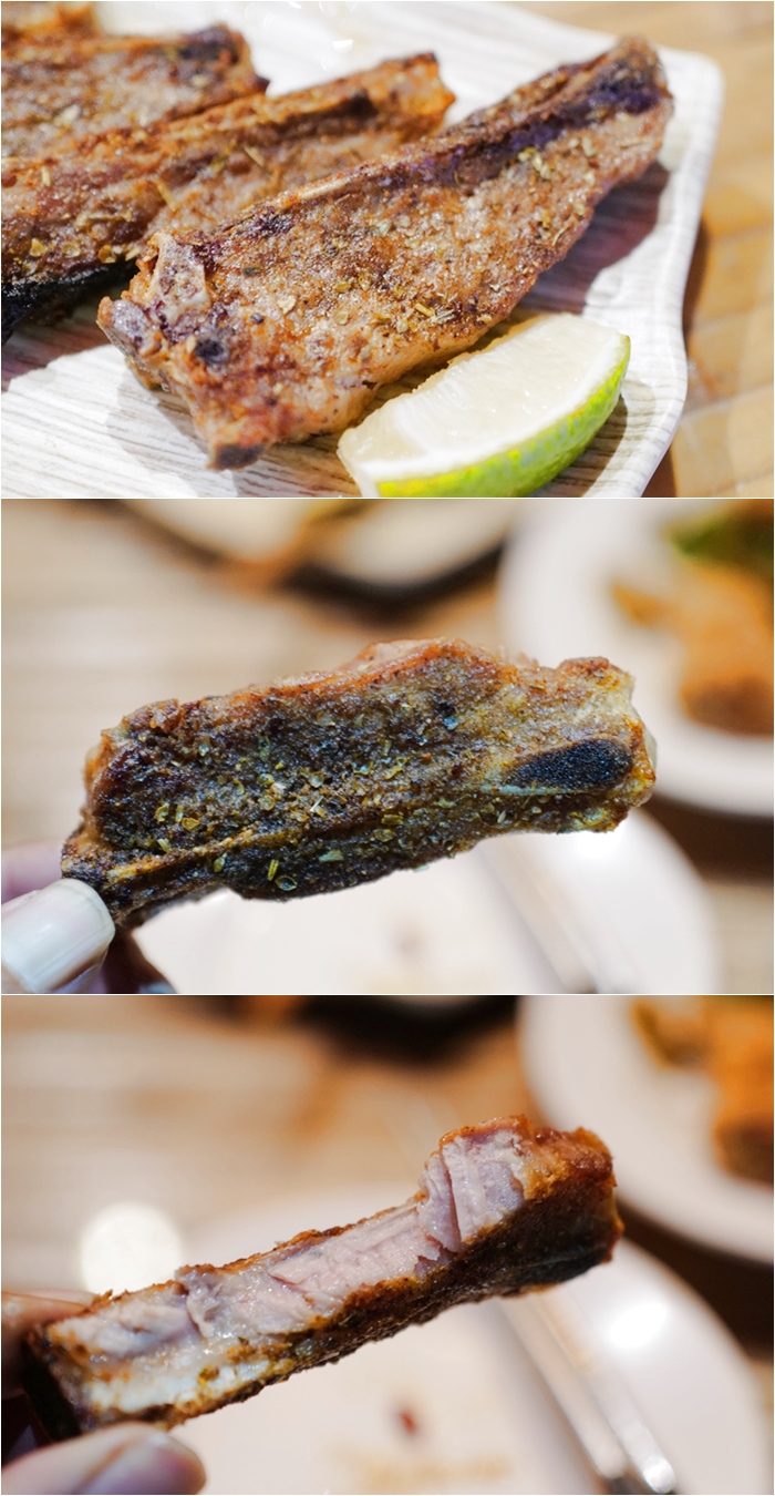 | 推薦大家一定要點這一道,超級好吃又下酒,鹹香的表皮,一口咬下肋排肉超爽,口感不會太乾柴,咀嚼起來又有肉汁,超推! |