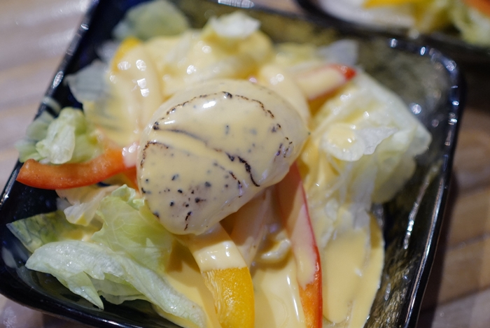 超大一顆干貝入口就是爽,調的蜂蜜芥末醬太妃超喜歡。 |