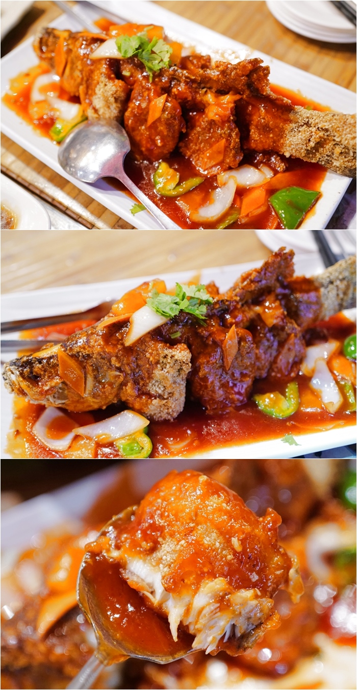 拜託你來這裡一定要點這一條糖醋鱸魚,這價位真的太便宜了,超大的一條鱸魚加上先炸過後在淋上糖醋,一般熱炒店哪來這樣的大菜,糖醋醬酸甜鹹的滋味拌著魚肉入口,一整個瞬間被搶食,真的太好吃,當天我們叫了兩條來吃,真的超級無敵推薦! |