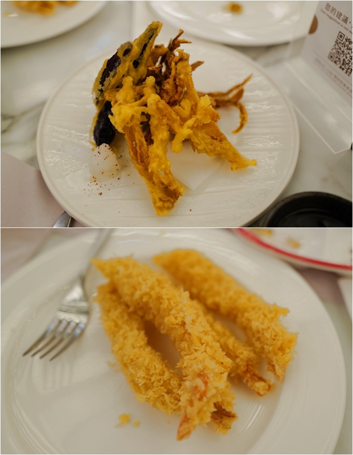 | 炸蝦品質非常好,雖然都是拉長蝦,但是他們的拉長蝦真的蝦肉較多,麵衣炸的恰到好處一點都不會過油,沾上醬汁酥脆入口又美味,還有炸蔬菜也都很推薦。 |