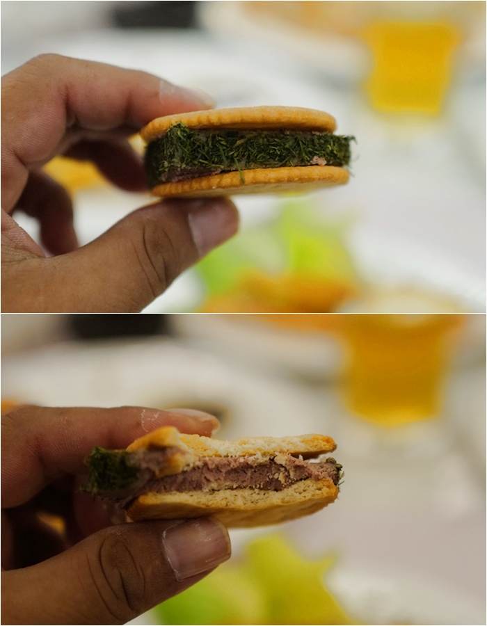 | 用餅乾夾著雞肝醬,再搭配每一種起司,入口那濃郁的雞肝風味帶點苦味跟雞肝獨特的味道,與起司一起入口起了超多變化,那層次豐富的滋味瞬間提升好多倍。 |