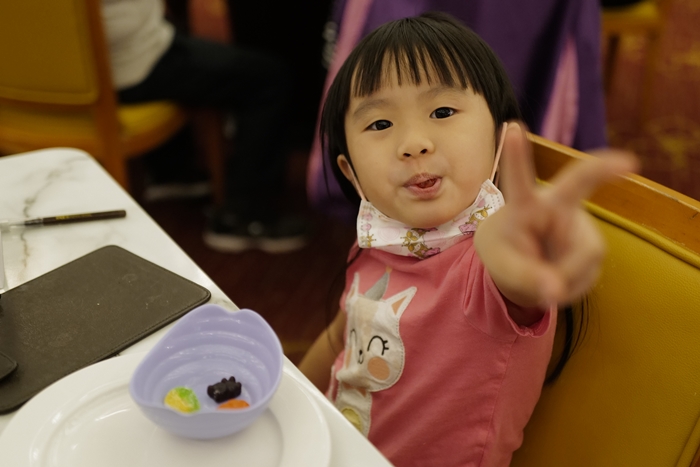 | 女兒還快樂吃著軟糖,好啦,她能安靜坐著就是謝天謝地了。 |