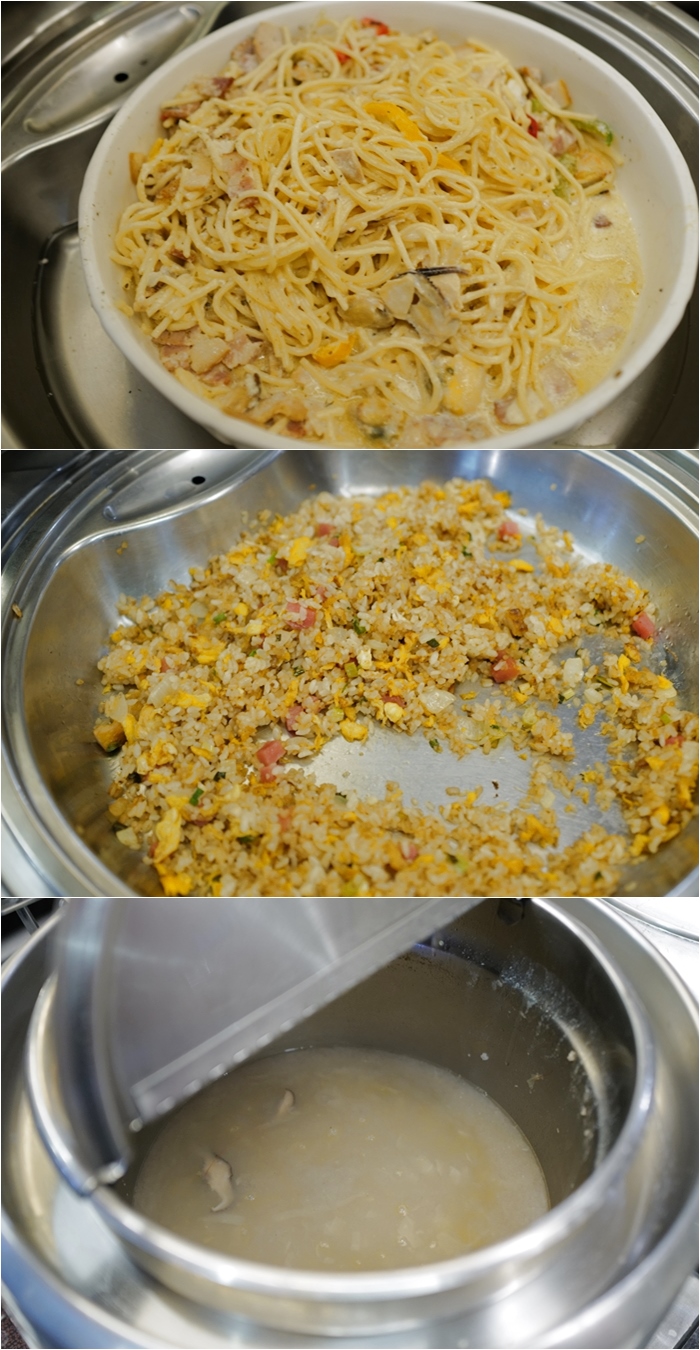 | 主食類有義大利麵、炒飯跟海鮮粥,旁邊還有自煮擔仔麵區,除非給小孩子吃的,不然我也不建議一開始就主攻煮食,胃的空間有限啊! |