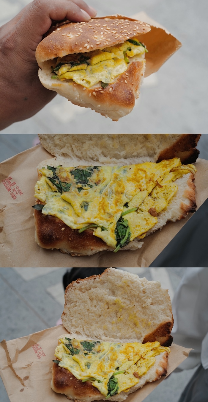 | 臉面的干貝蔥蛋滋味很好,搭配燒餅還有一起吃真的相當不賴,整體的口感跟味道都相當豐富,但是麵包有點搶到太多風采,因為燒餅皮較厚實,所以會導致有點乾,但是整體上是好吃的,如果配上一杯豆漿會更好,不然真的很乾。 |