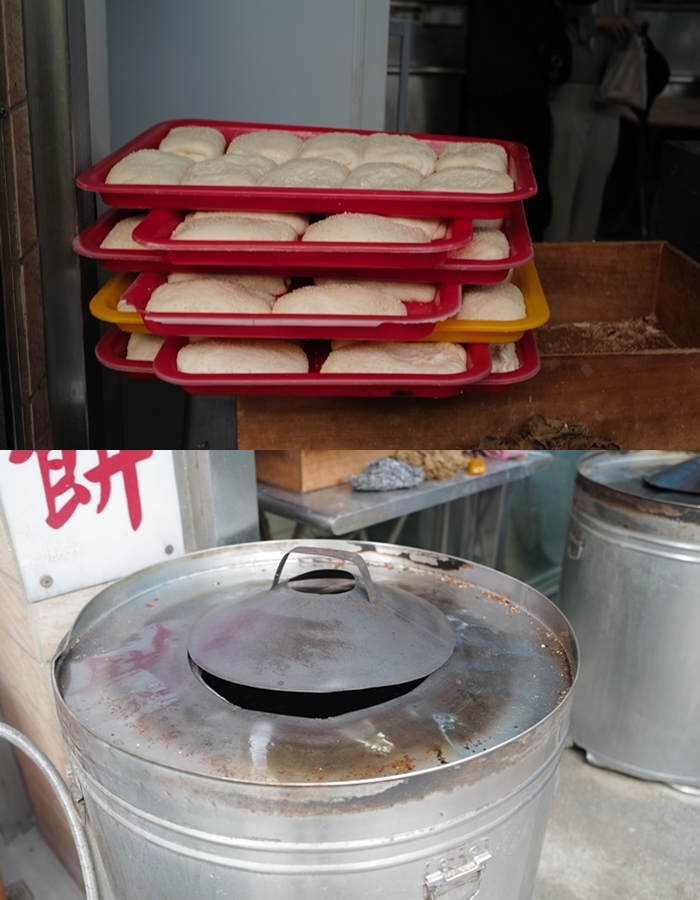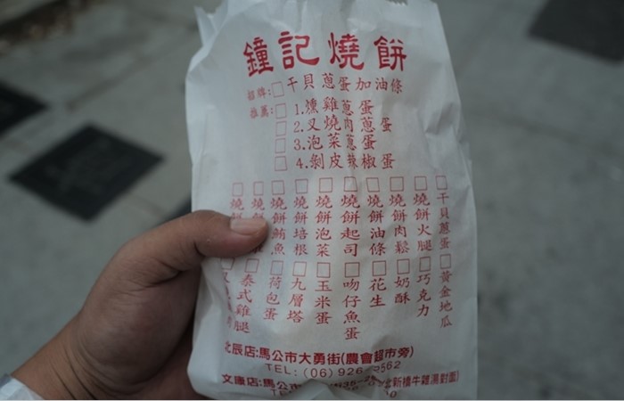 | 等待了一下子就拿到了熱騰騰的燒餅了,燒餅的口味還滿多的,應該說可以燒餅內餡選擇性較多,但是我們點了最多人點的口味。 |