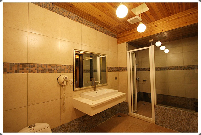 | 衛浴間內沒有浴缸,只有簡單的淋浴設備,擁有蒸氣浴。