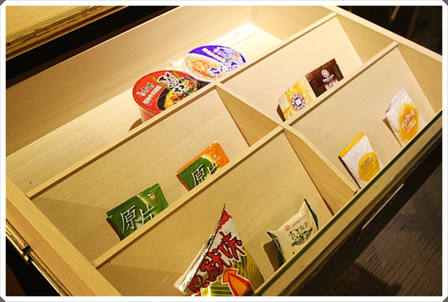 | 除了咖啡與茶包,還提供兩碗小碗的康師傅泡麵,還有一些小餅乾。