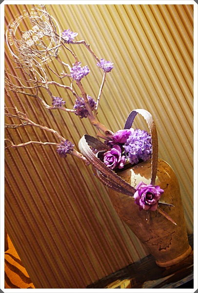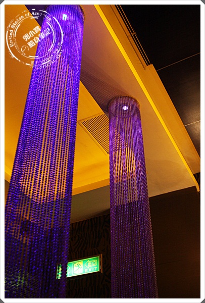 | 我喜歡這幾條串珠垂下來在打上紫色燈光的感覺,燈光隨著珠簾擺動感覺還滿漂亮的。