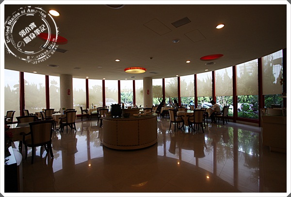 | 圓型的餐廳好漂亮@@,地板打蠟到會反射耶,一整面的落地窗,外面是草皮根樹木,好大自然的一份早餐。